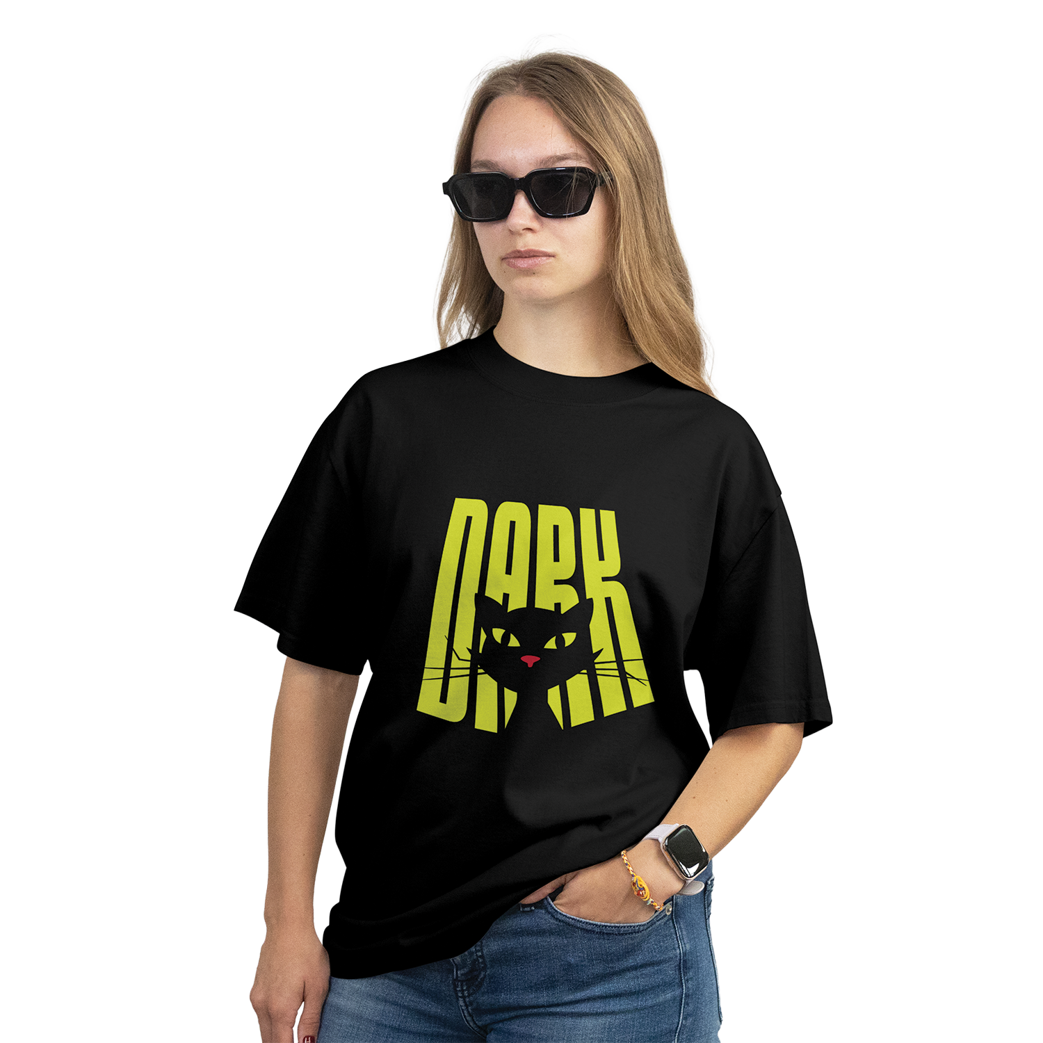 Dark Cat Unisex Black Oversized T-Shirt.